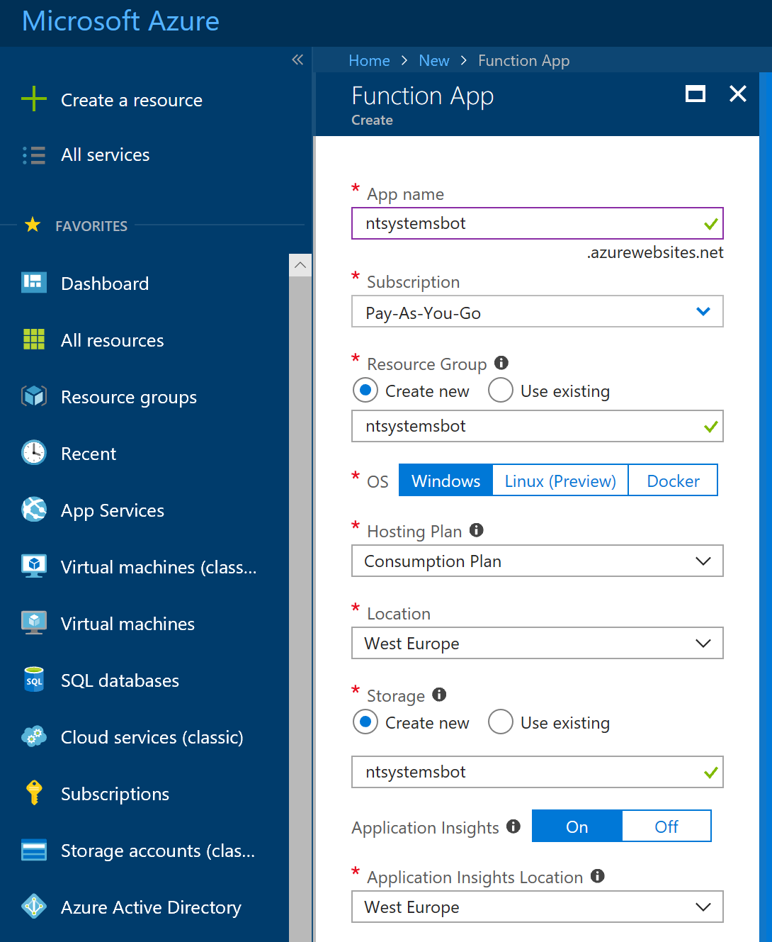 So yes, we’re going to hook up our bot with a function app running PowerShell code in Azure.