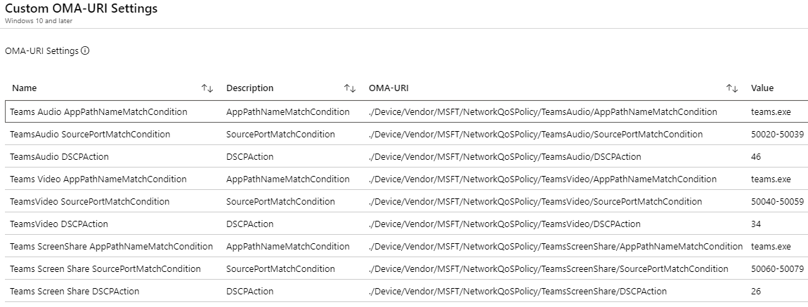 Now it turns out there is a CSP for policy-based QoS but it just applies to Surface Hub devices. If you’re lucky enough to configure QoS on such a device, here is a screenshot of the settings you will most likely use.